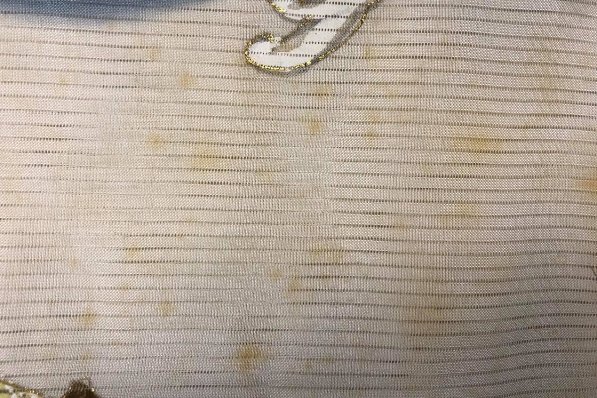 シミや汚れを見つけたらなるべく早くご連絡ください。時間が経つにつれて、シミは落としにくくなります。またシミは原因によって扱いが違います。シミを落とした後、色の補正などが必要な場合があります。ほおっておくとカビや黄ばみの原因になります。